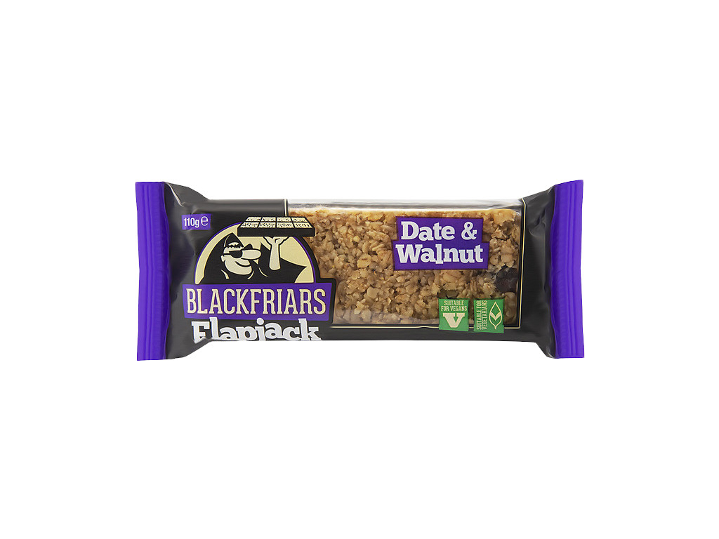 Flapjack Blackfriars s datlemi a vlašskými ořechy je poctivá ovesná tyčinka, která díky obsahu komplexních sacharidů příjemně zasytí a dodá energii během dne. Přirozená sladkost datlí ladí s jemně křupavou texturou ořechů. Vhodné pro vegetariány i vegany.
