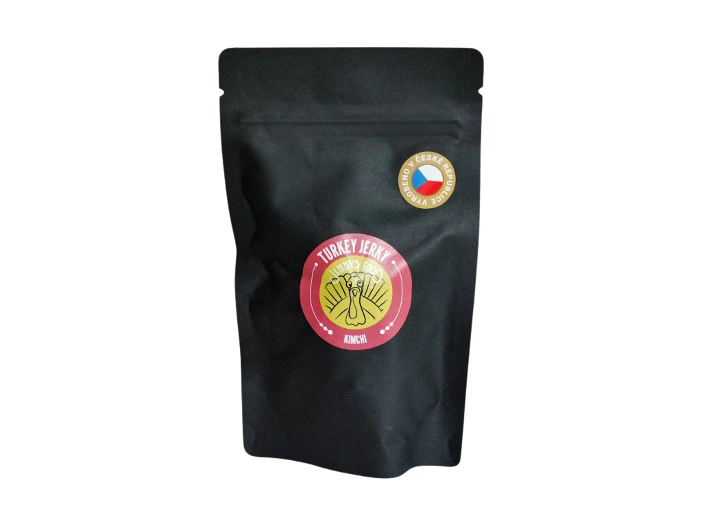 Jimmy’s Food Krůtí jerky Kimchi je sušené krůtí maso v kimchi marinádě, které spojuje lehčí maso s výraznou chutí fermentované zeleniny. Voní po česneku, zázvoru a chilli, chuť je pikantní, ale zároveň svěží a vyvážená.