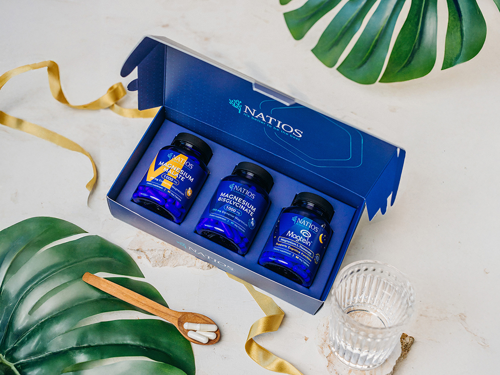 NATIOS Dárkový balíček Kompletní dávka hořčíku Hořčík Malát, Bisglycinát, Magtein