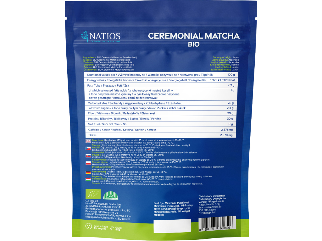 NATIOS Matcha zelený čaj BIO prášek, 100 g