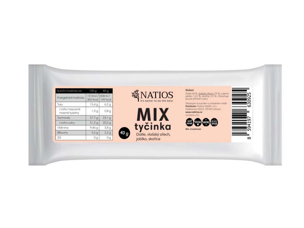 NATIOS Mix tyčinka - Datle, vlašský ořech, jablko, skořice, 40 g