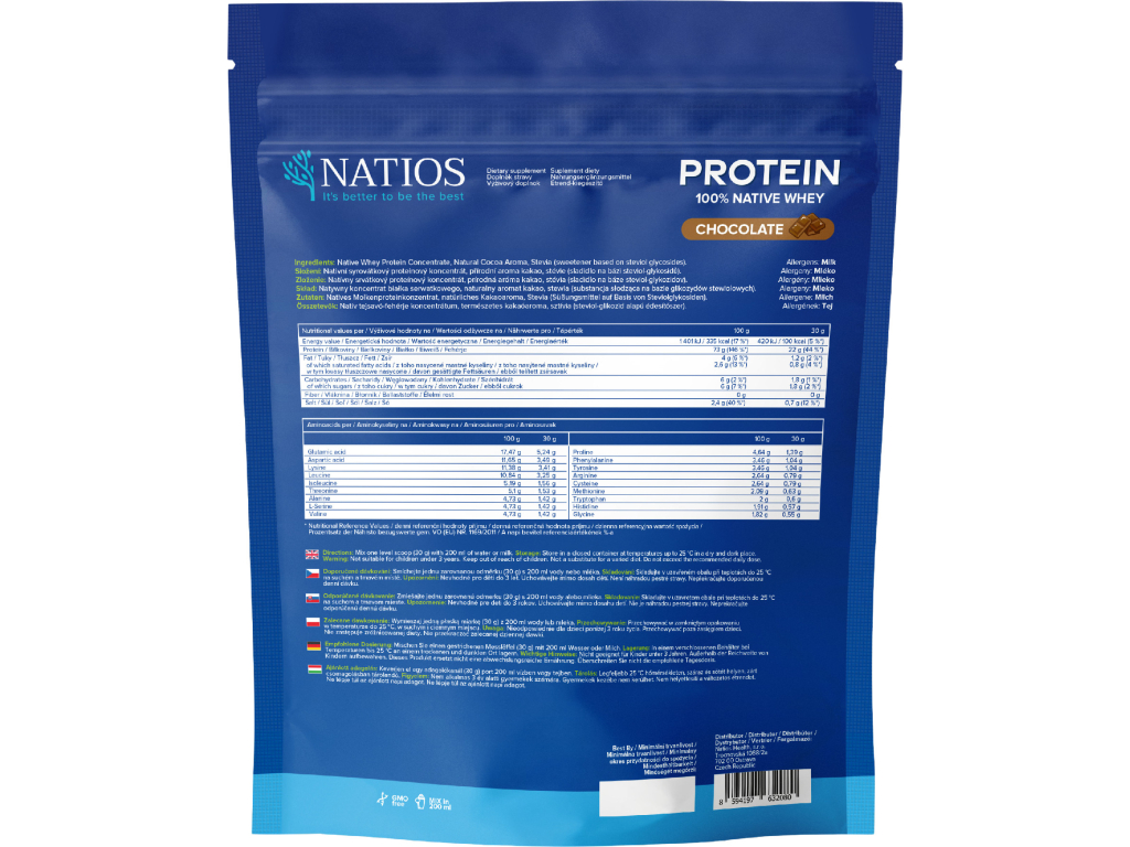 NATIOS Native Whey Protein, Čokoláda, 1000 g