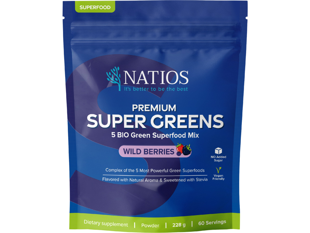 NATIOS Premium Super Greens, Lesní ovoce, 228 g