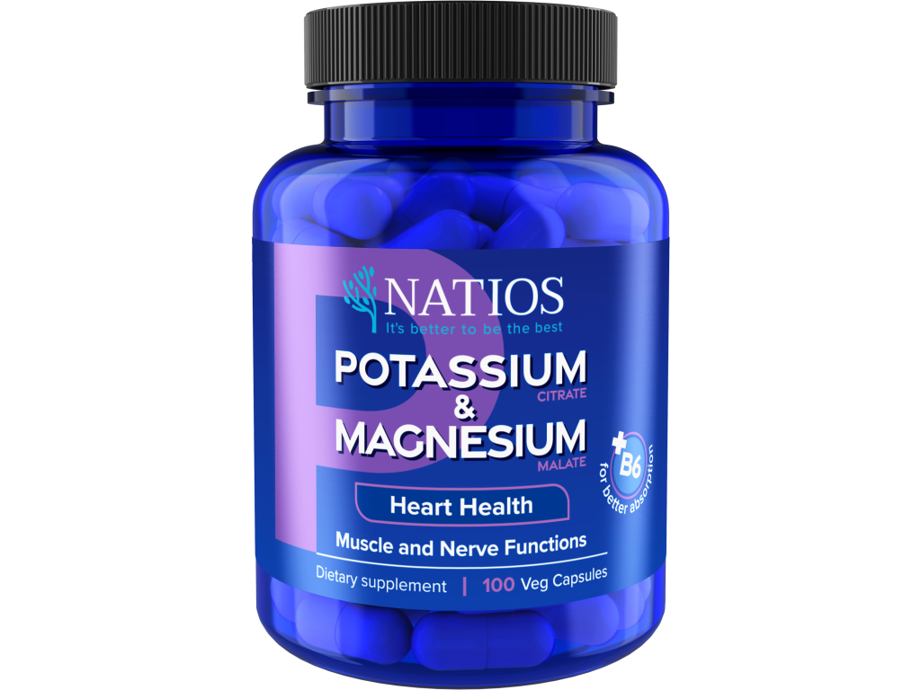 NATIOS Potassium & Magnesium (draslík citrát + hořčík malát) – synergická kombinace dvou minerálů, které se podílejí na správné činnosti svalů, včetně srdečního. Pomáhá udržet rovnováhu elektrolytů a přirozené fungování svalů.
