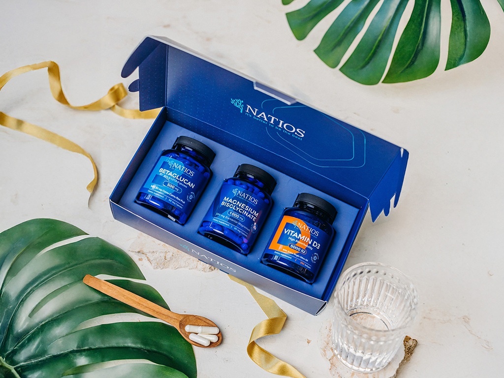 NATIOS x @lekarna_v_kapse dárkový balíček - Vitamín D3, Betaglucan, Hořčík Bisglycinát