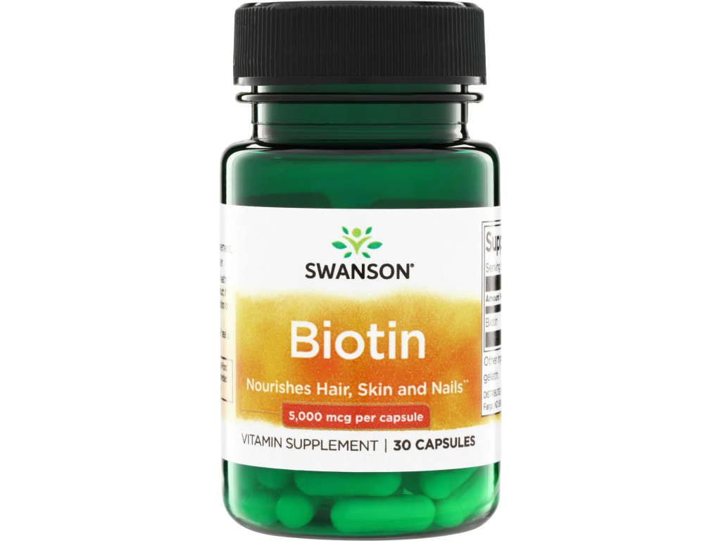 Swanson Biotin, 5000 μg, 30 veganských kapslí