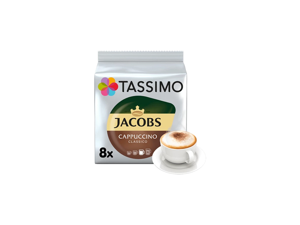 Vychutnejte si kombinaci silného espressa a jemné pěny s lahodným Jacobs Cappuccino od TASSIMO.